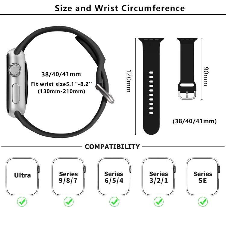 1. 42mm / 41mm / 40mm / 38mm Watch Band Compatible with Apple Watch Series 10 42mm, Watch Series 9 41mm, Watch Series 8 41mm, Watch Series 7 41mm, Watch SE 2023 40mm, Watch SE 2022 40mm, Watch SE 40mm, Watch Series 6 40mm, Watch Series 5 40mm, Watch Series 4 40mm, Watch Series 3 38mm, Watch Series 2 38mm, Watch 38mm