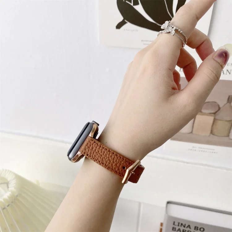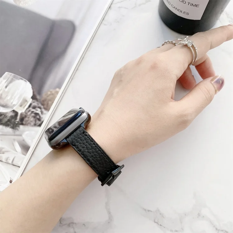 Litchi Texture Slimming Strap Watchband For Apple Watch Series