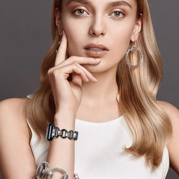 Oval Diamonds Steel Watch Band, For Apple Watch 46mm / 49mm / 45mm / 44mm, For Apple Watch 42mm / 41mm / 40mm / 38mm
