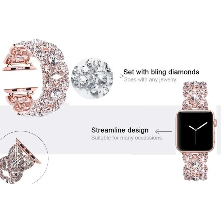 Petaled Metal Diamond Wristband Strap For Apple Watch Series 9 / 8 / 7 / 6 / SE / 5 / 4 / 3, 1215 Silver, 1202 Silver, 1215 Black, 1202 Black, 1215 Rose Gold, 1202 Rose Gold, 1202 Rose Gold Red…