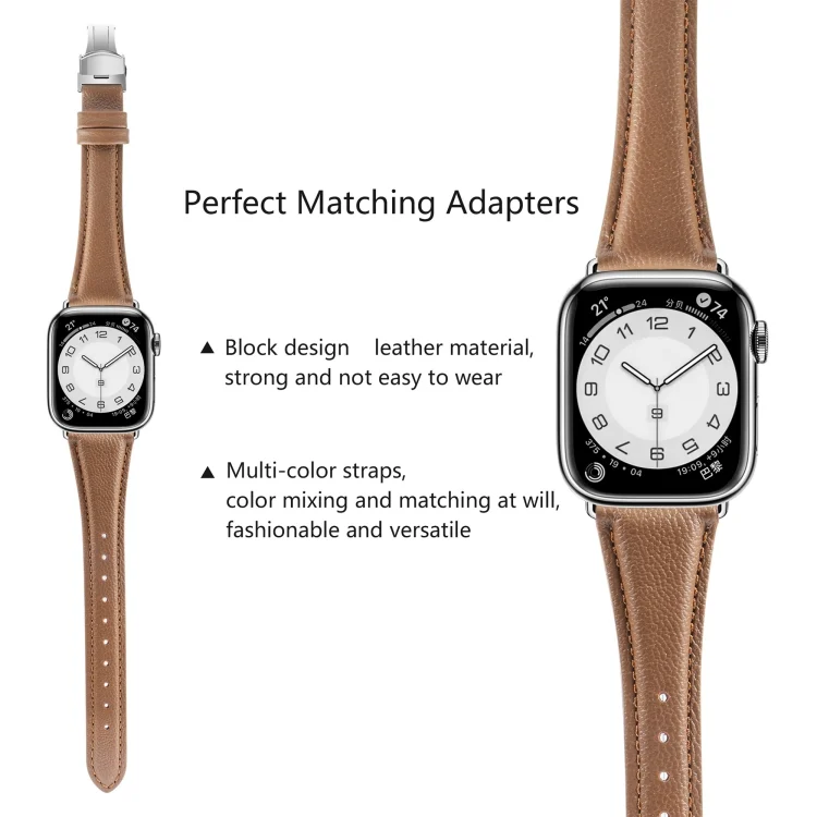 Plain Leather Butterfly Buckle Watch Band, For Apple Watch Series 6 44mm