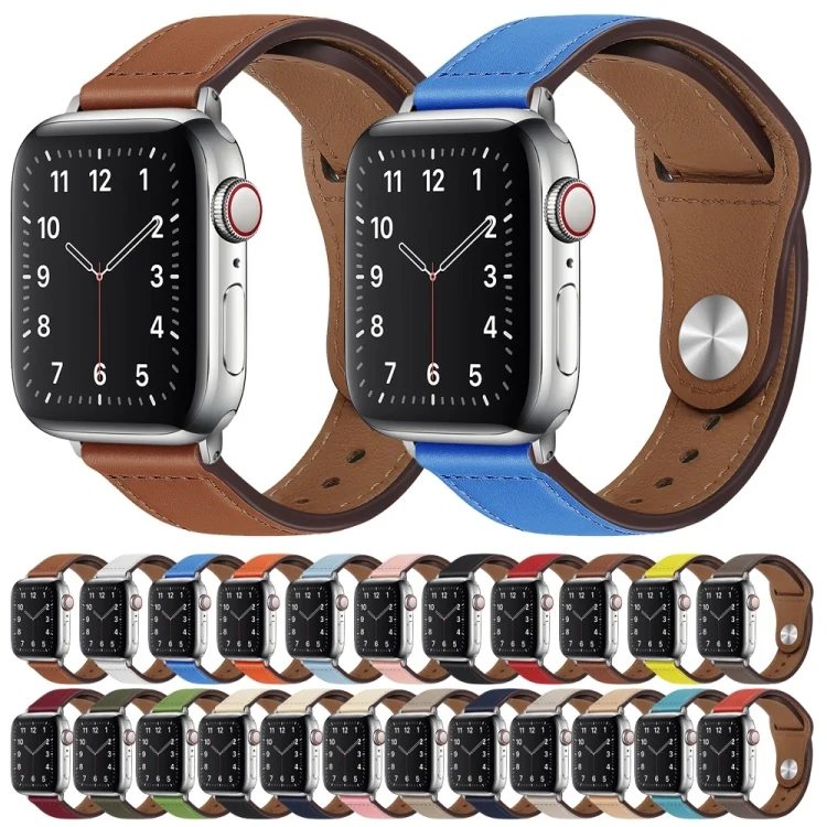 PU Leather Silver Buckle Watch Band For Apple Watch Series