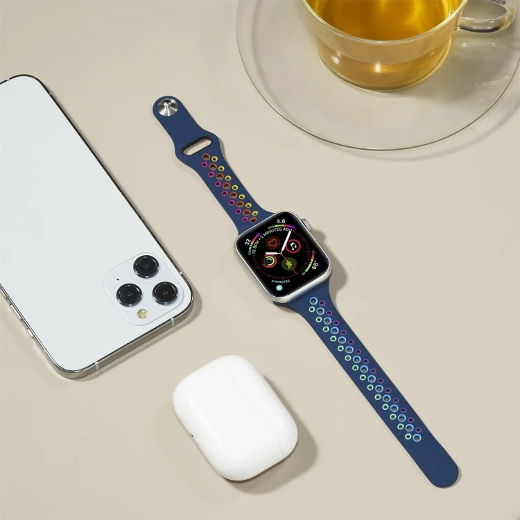 Rainbow Silicone Watchband For Apple Watch Series 6 & SE & 5 & 4 40mm / 3 & 2 & 1 38mm, For Apple Watch Series 8&7 41mm / SE 2&6&SE&5&4 40mm / 3&2&1 38mm…