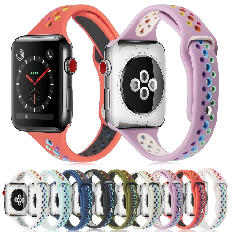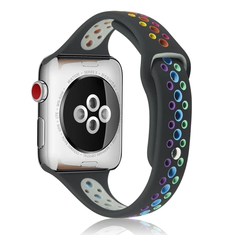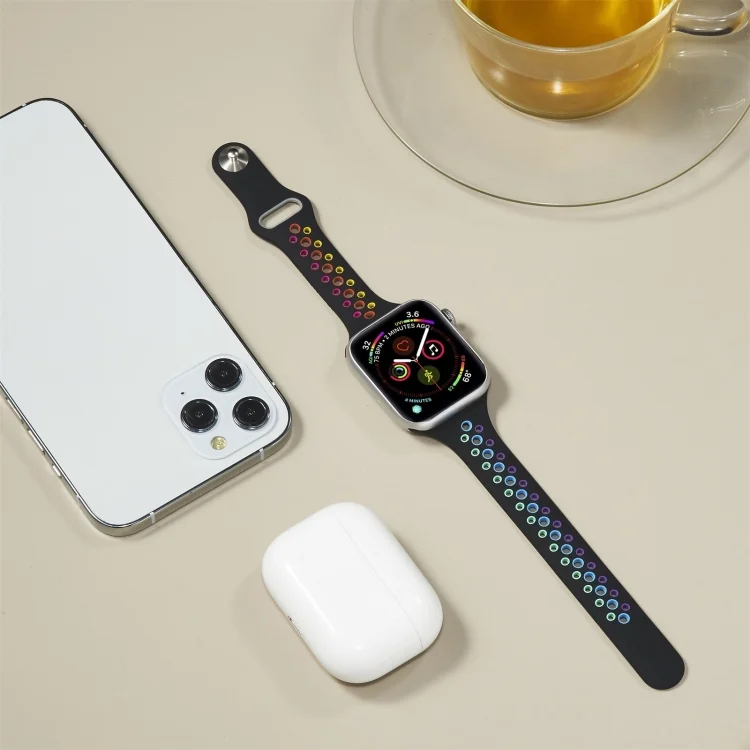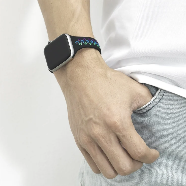 Rainbow Silicone Watchband For Apple Watch Series 6 & SE & 5 & 4 44mm / 3 & 2 & 1 42mm, For Apple Watch Ultra 49mm / Series 8&7 45mm / SE 2&6&SE&5&4 44mm / 3&2&1 42mm