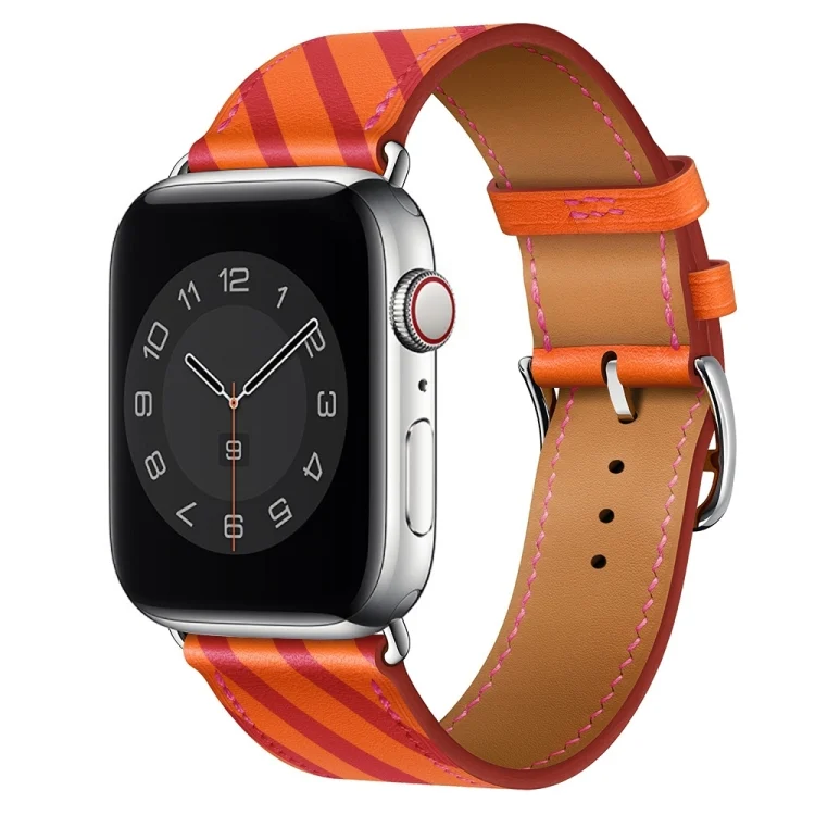 Strip Texture Leather Replacement Watchbands For Apple Watch Series, 7 45mm / 6 & SE & 5 & 4 44mm / 3 & 2 & 1 42mm, 7 41mm / 6 & SE & 5 & 4 40mm / 3 & 2 & 1 38mm