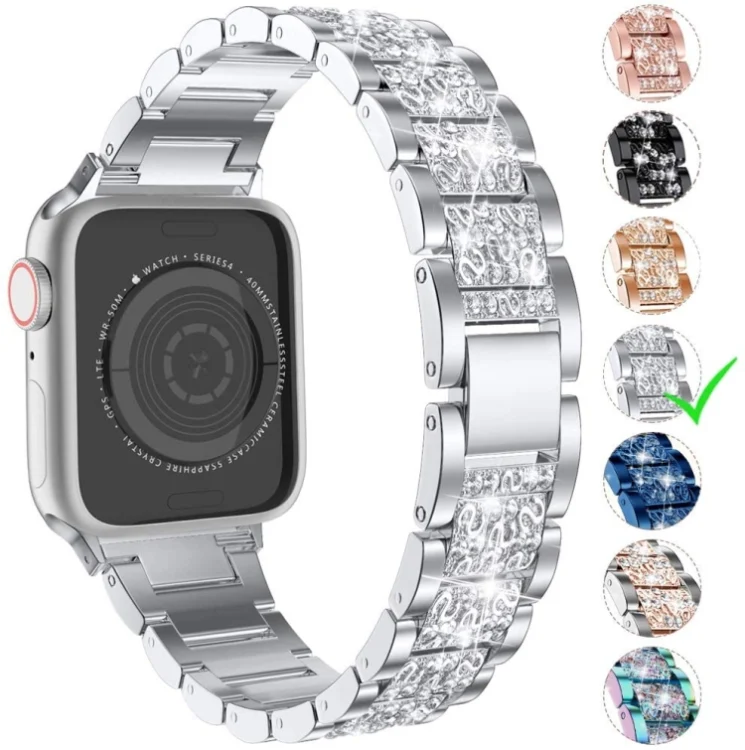 Three Stainless Steel Straps with Rhinestones, For Series 7 41mm / 6 & SE & 5 & 4 40mm / 3 & 2 & 1 38mm, For Series 7 45mm / 6 & SE & 5 & 4 44mm / 3 & 2 & 1 42mm