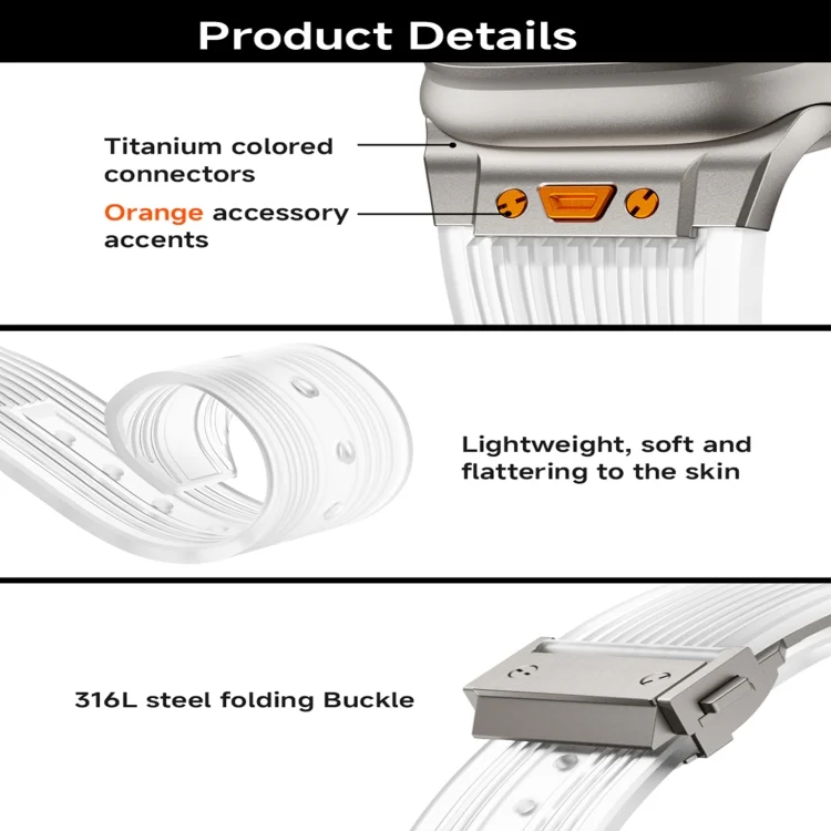 Transparent Silicone Watch Band, For Apple Watch Ultra 49mm, For Apple Watch Series 8 45mm, For Apple Watch Series 7 45mm