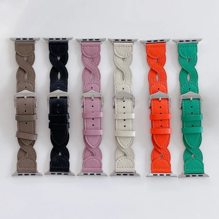 Twist Stitched Genuine Leather Watch Band For Apple Watch Series