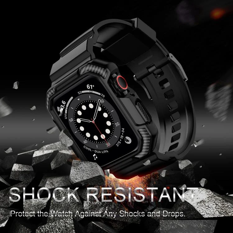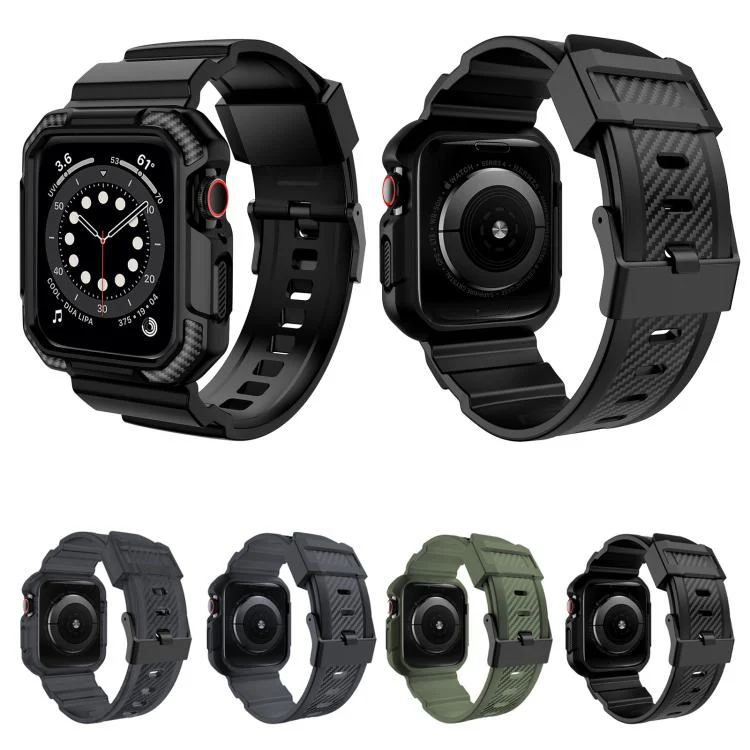 VIETAO Carbon Fiber Silicone Strap, For Apple Watch 46mm / 45mm / 44mm / 42mm, For Apple Watch 42mm / 41mm / 40mm / 38mm