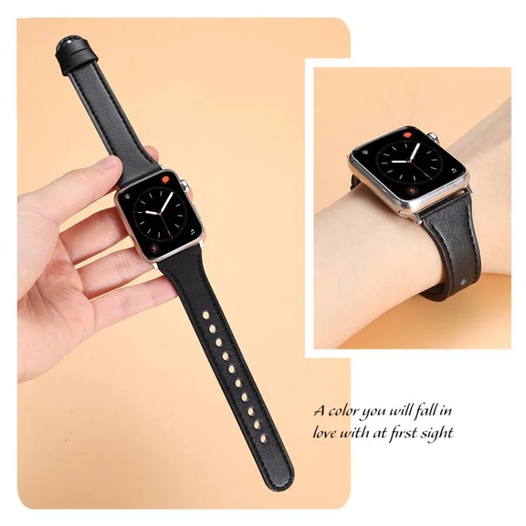 xDfind Double Ring Single Rivet Genuine Leather Watch Band, For Apple Watch 42 / 44 / 45 / 46 / 49mm, For Apple Watch 38 / 40 / 41 / S10 42mm