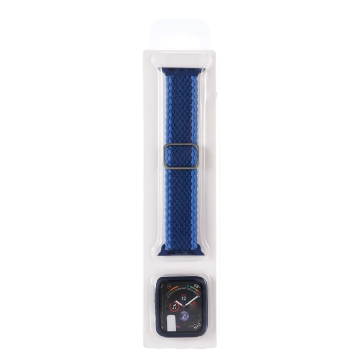 Adjustable Striped Woven Nylon Watchband + Watch Case Set For Apple Watch Series