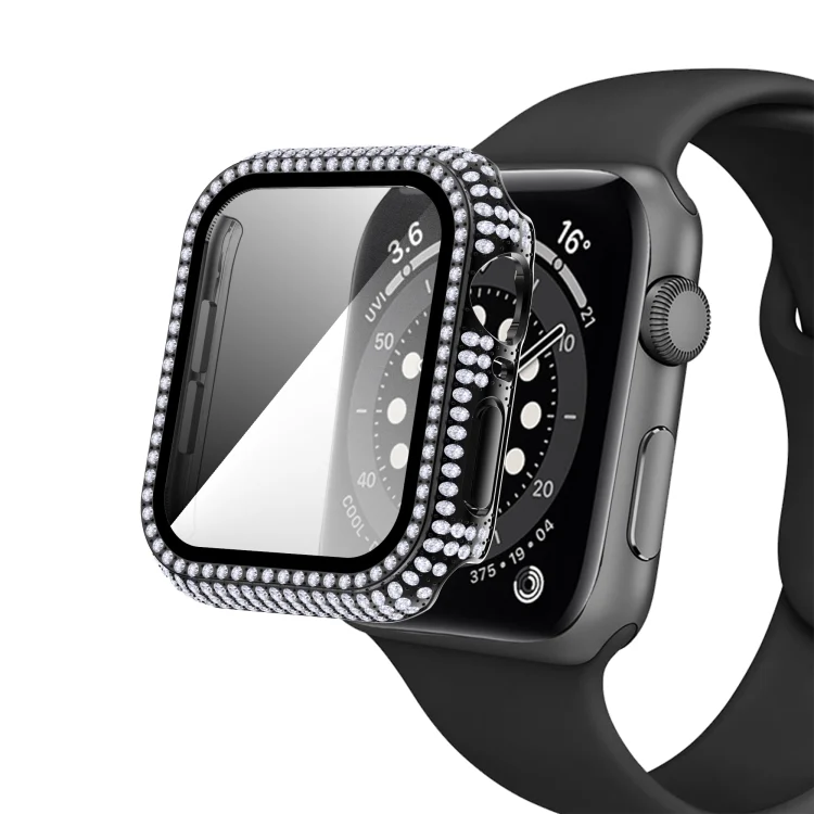 Diamond PC + Tempered Glass Watch Case For Apple Watch Series