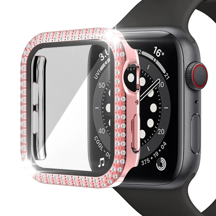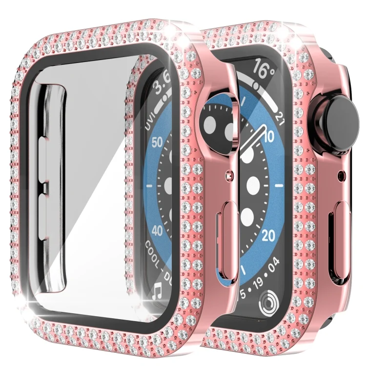 Double-Row Diamond PC+Tempered Glass Watch Case For Apple Watch Series