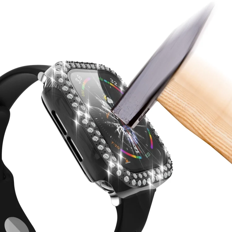 Electroplating PC Double Rows Diamond Protective Case with Tempered Glass Film For Apple Watch Series