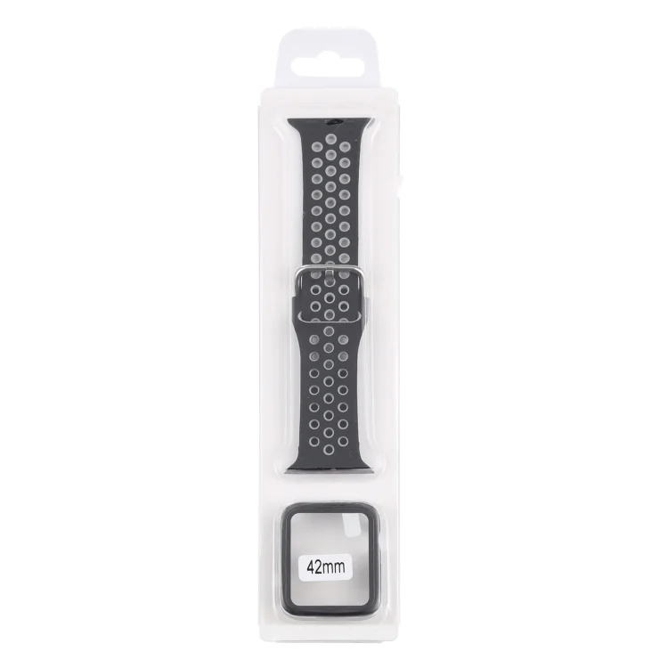 Silicone Replacement Strap Watchband + Protective Case with Screen Protector Set For Apple Watch Series