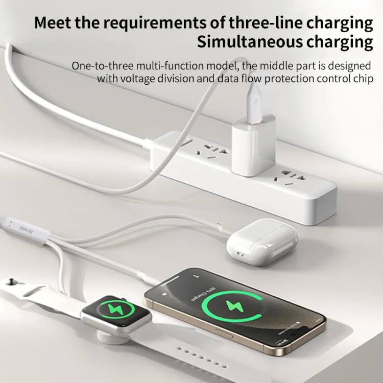 2. Support 8 Pin + Type-c dual charging and fast charging at the same time, equipped with an intelligent diversion solution, which can meet the needs of 2 or 3 devices for fast charging at the same time: