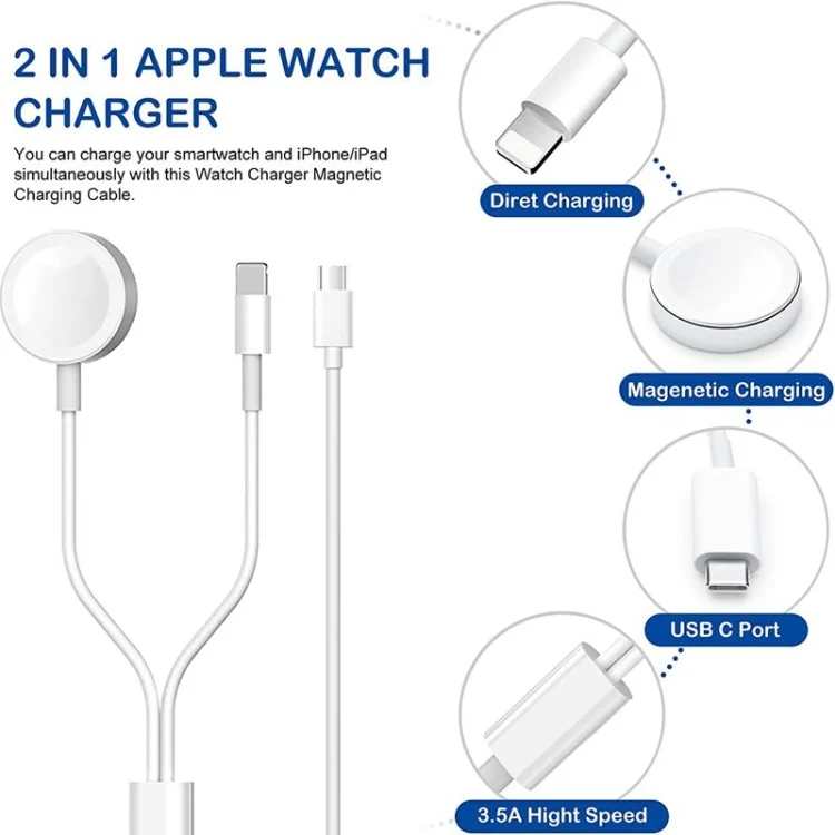2. Charging Watch and Phone at Same time: Our watch charger can help you spend less than 2.5 hours to charge your watch and phone, the watch charger cable length of watch and phone are different, they do not interfere with each other when they are charging at the same time.