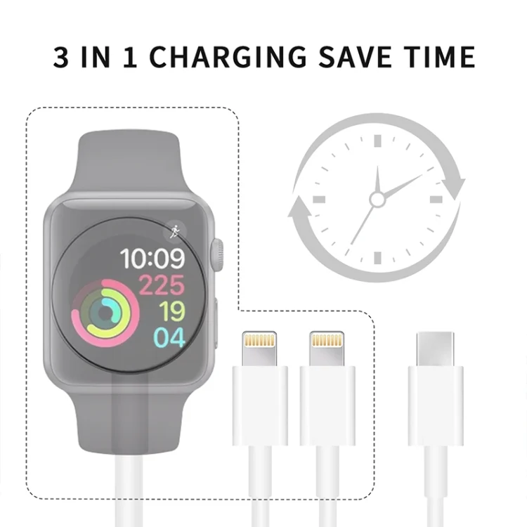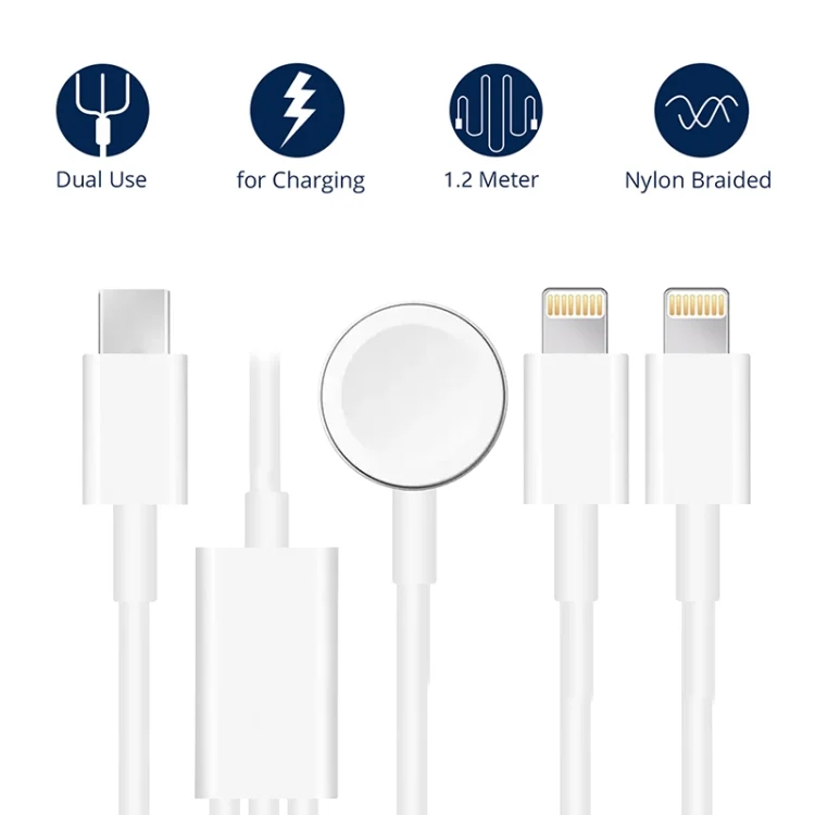 For Apple Watch Series & iPhone 3 in 1 Type-C Magnetic Charging Cable 4ft/1.2m