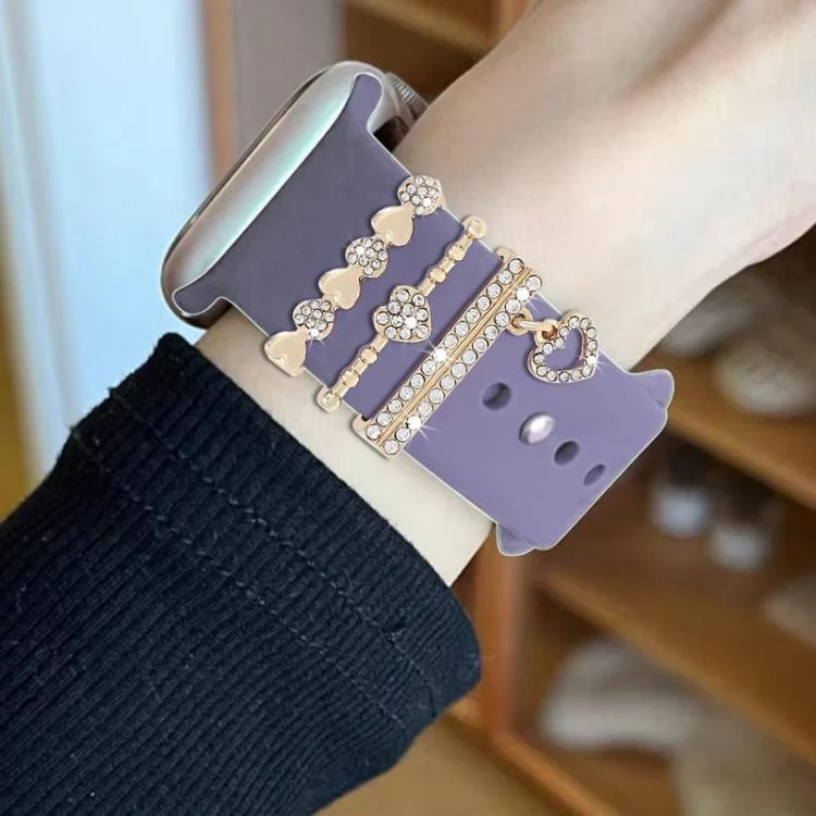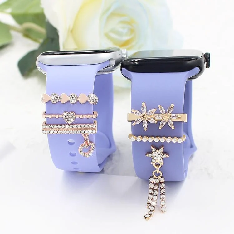 21mm Width Smart Watch Universal Silicone Band Heart Decorative Ring Metal Accessories