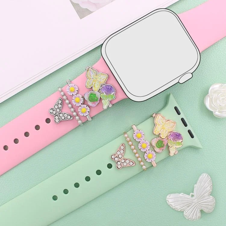 4pcs / Set 22mm Width Smart Watch Butterfly Flower Band Decorative Ring Metal Accessories