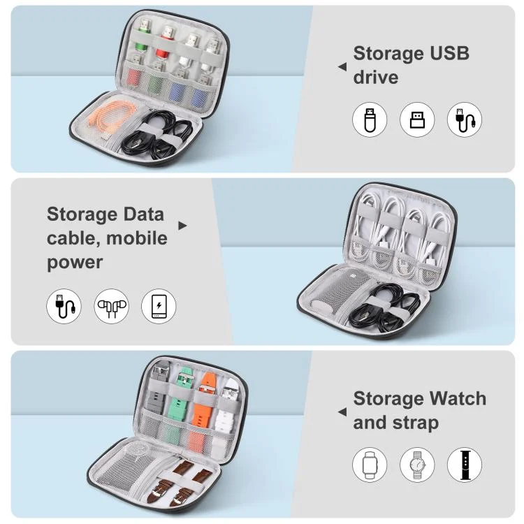 4. Multiple Use: This travel organizer bag can be used for watch straps, watch storage, data cables, BT earphones, USB disk, other digital accessories storage.