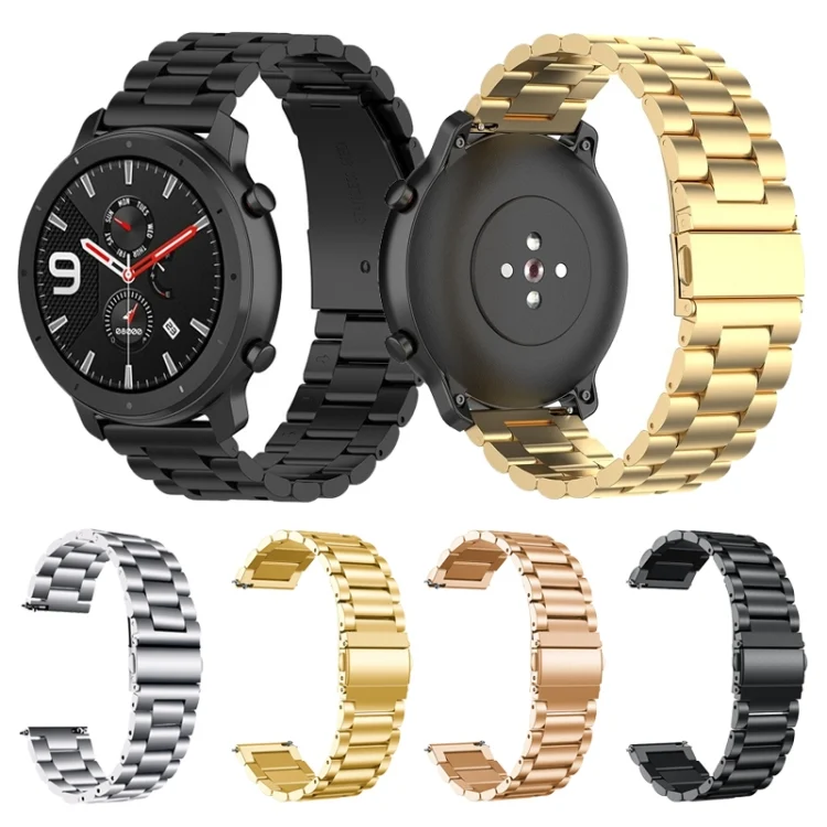 Applicable To Ticwatch Generation / Moto360 Second Generation 460 / Samsung GearS3 / Huawei GT Universal 22mm Stainless Steel Metal Strap Butterfly Buckle Three Beads