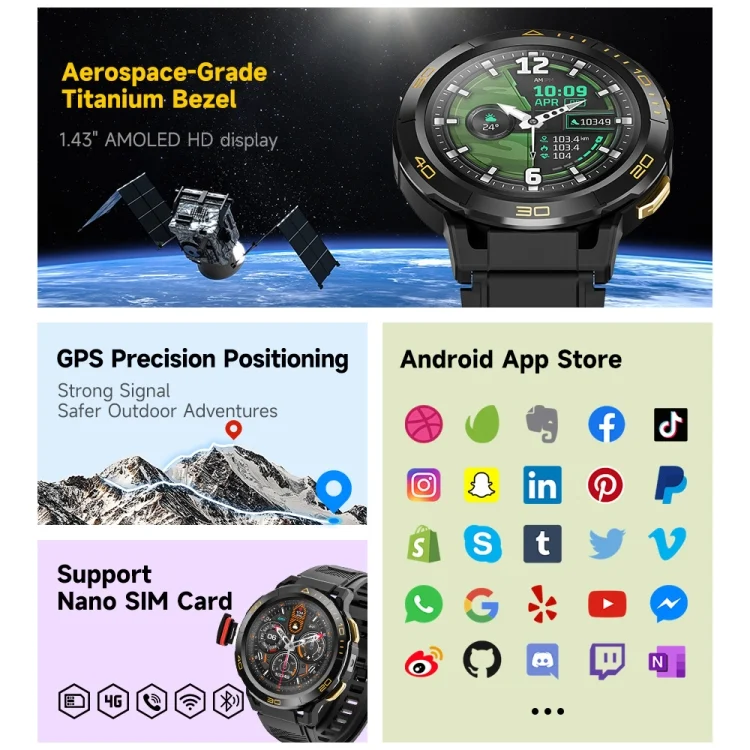 Zeblaze Thor Ultra 1.43 inch AMOLED Screen Android Smart Watch, Steel Strap