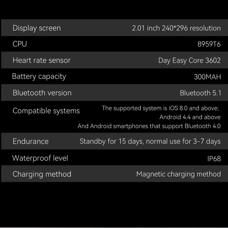 7. Compatible with smartphone systems: Android 4.5 or IOS 8.0 or above systems, and supports Bluetooth 4.0 Android smartphones