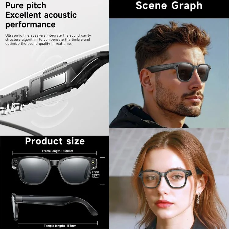 L801 Smart Glasses with 8MP HD Camera Video Recording WiFi Transmission Al Smart Voice Assistant Smart Wearable Headset