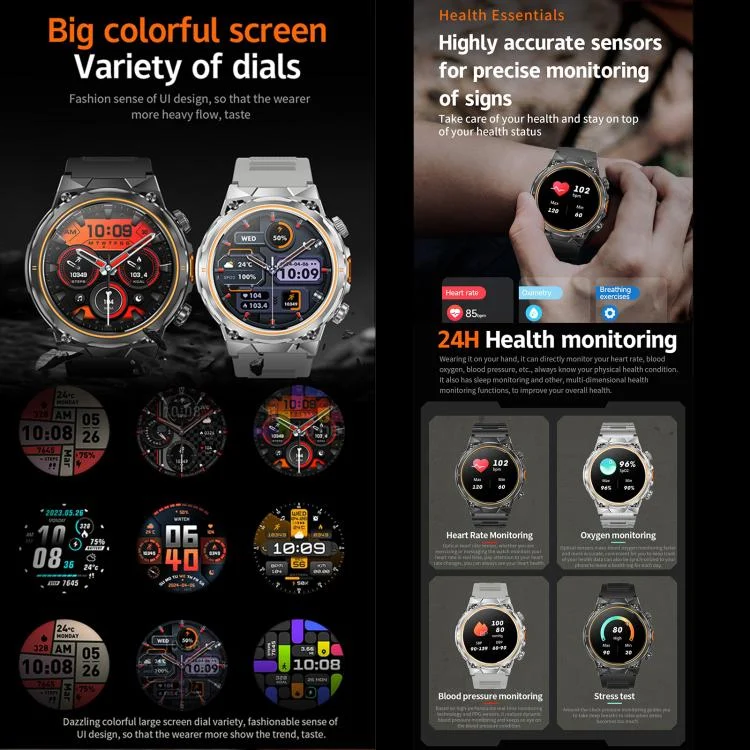 AK82 BT Call Smart Watch, Support Blood Oxygen / Blood Pressure / Heart Rate / Sports Health Monitoring Fitness Tracker