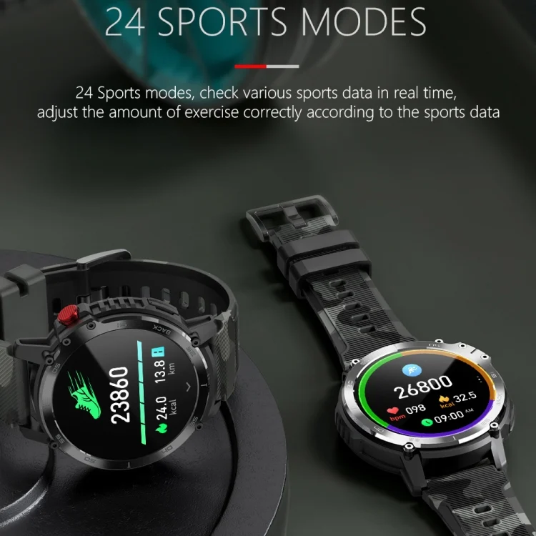 C22 1.6 inch Round Screen Bluetooth Smart Watch, Support Health Monitoring & 24 Sports Modes