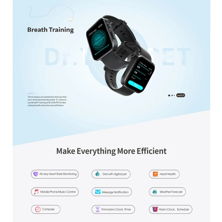 8. Bluetooth voice call, Bluetooth music playback, one-key wake-up mobile phone voice assistant, heart health monitoring (screening for arrhythmia), accurate blood oxygen detection, scientific sleep (REM), breathing training, stress evaluation, 24-hour heart rate monitoring, pets Calorie development (dynamic and fun)