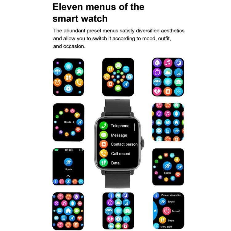 9. Functions: Breathing training, dial push, stopwatch, brightness adjustment, multi-sport mode, sleep, heart rate, information, music control, remote photography, weather, find mobile phone (used by connecting to mobile phone), Bluetooth calling, Bluetooth music playback, password protection , calculator, split-screen display, shortcut widget, weather, female assistant, massager, Alipay, voice assistant, my QR code