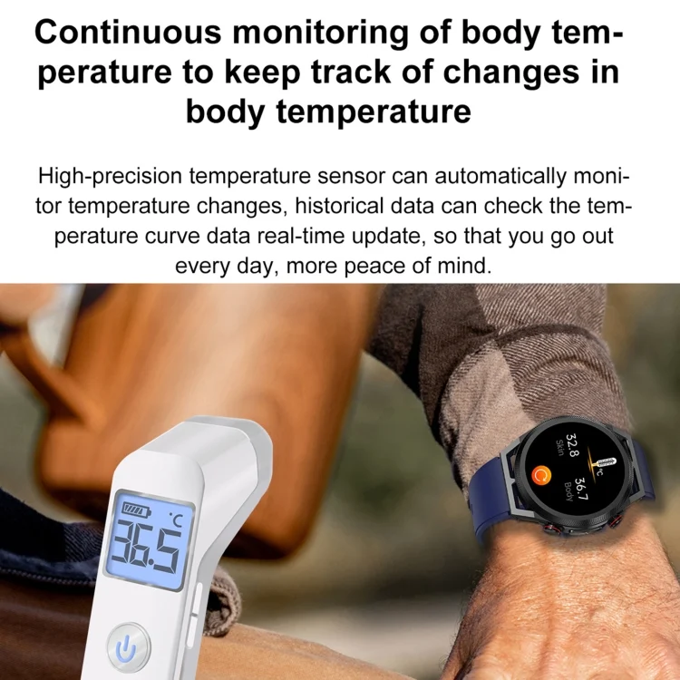 ET310 1.39 inch IPS Screen IP67 Waterproof Silicone Band Smart Watch, Support Body Temperature Monitoring / ECG