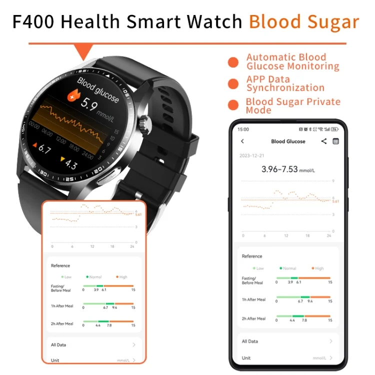 F400 1.55 Inch Screen Smart Watch Support ECG/ Blood Oxygen / Blood Sugar / 150+ Sports Mode