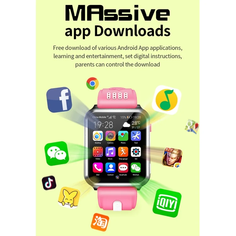 11. Support MP3 function, recording function, video recording function, alarm clock, real-time step counting, electronic fence, real-time trajectory, tracking and positioning, voice intercom, real-time monitoring, forbidden calls from strangers, class schedule, weather forecast, AI voice robot, etc.