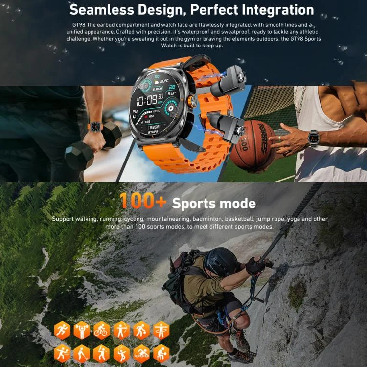 HAMTOD GT98 Headphones Smart Watch,1.53 inch, Support Bluetooth Call / NFC / Heart Rate
