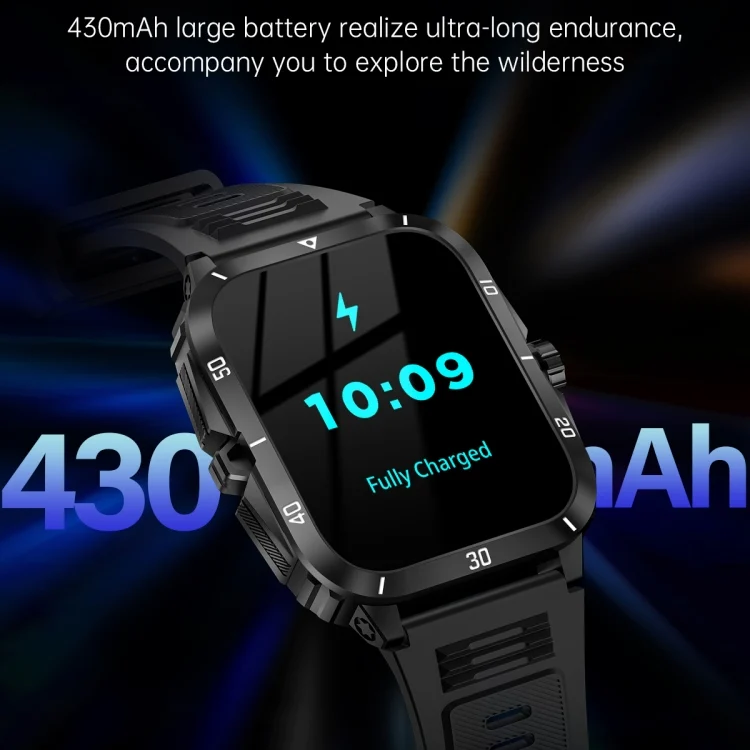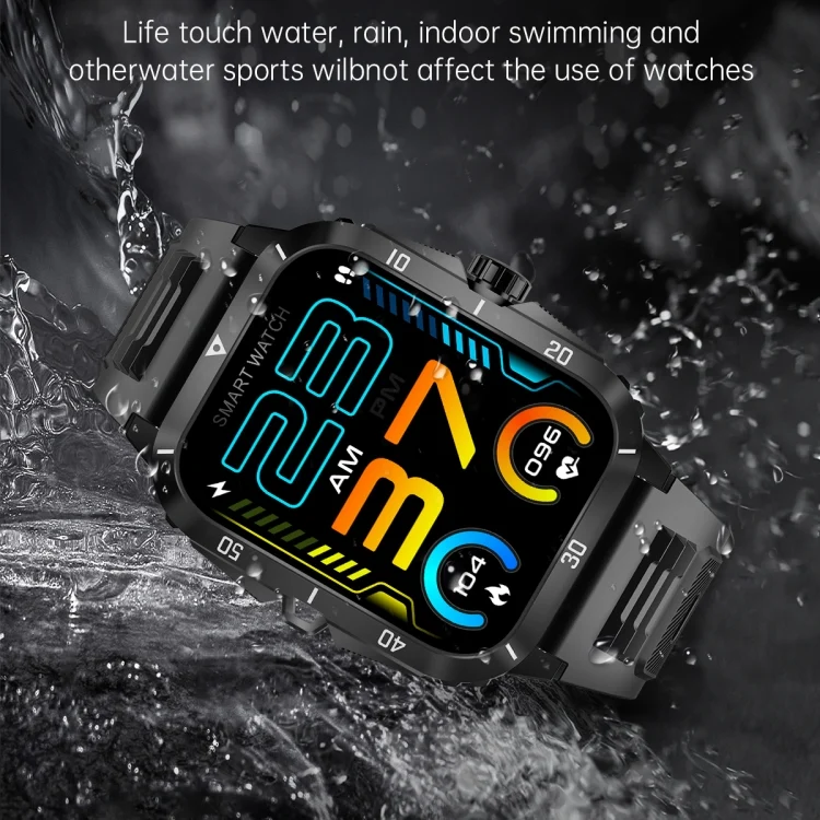 KT71 1.96 inch HD Square Screen Rugged Smart Watch Supports Bluetooth Calls/Sleep Monitoring/Blood Oxygen Monitoring