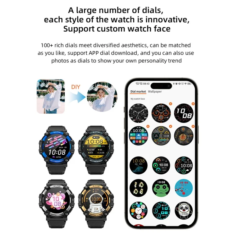 15. Full-time display: date, week, clock, minute (instant display); time format: 12/24 hours dual format; after the mobile phone APP Bluetooth connection, the watch automatically reads the mobile phone time, date, format and synchronizes.