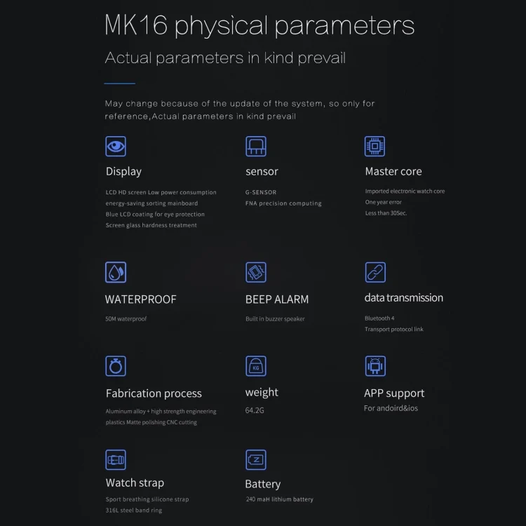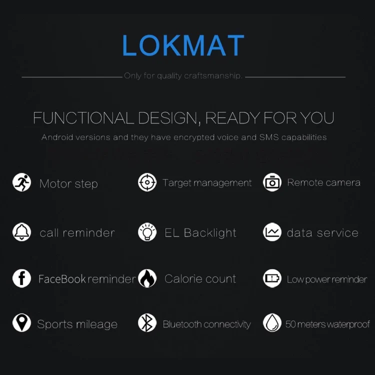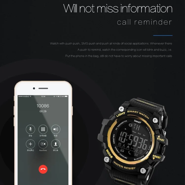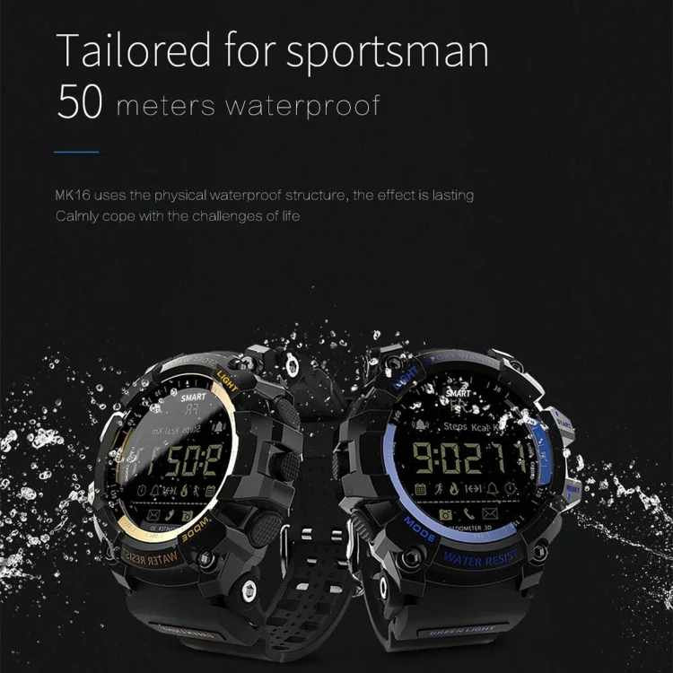 Lokmat MK16 LCD Screen 50m Waterproof Smart Watch, Support Information Reminder / Remote Camera / Walking Motion Monitor
