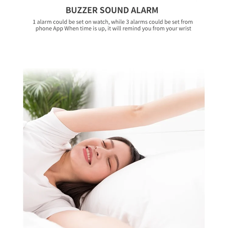 7. Function: exercise record (pedometer, calorie burn, mileage), exercise data storage: 7 days on the watch, long-term APP. Information Push: Push notifications for incoming calls, QQ, WeChat, SMS, Facebook Twitter, etc. (The phone or information sign on the dial flashes) Alarm clock, stopwatch, remote camera, Bluetooth music, mobile phone search, weather reminder, etc.