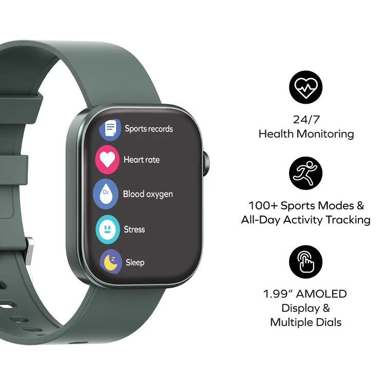1. Display: 1.99-inch AMOLED screen 410×494 resolution, 550NITS peak brightness, full-screen touch, glass cover