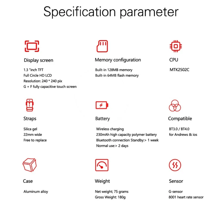 N6 Smart Watch 1.3 inch TFT Screen MTK2502C Bluetooth4.0, Silicone Watch Band, Support Heart Rate Monitor & Pedometer & Sleep Monitor & Sedentary Reminder