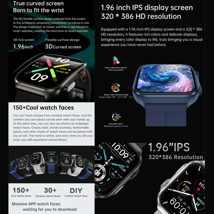 NX15 Smart Watch, 1.96 inch, BT Call / Heart Rate / Blood Pressure / Blood Oxygen