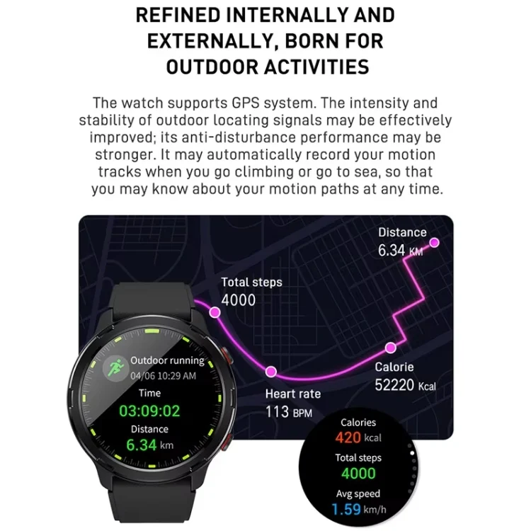 Outdoor GPS Sport Watch 1.32inch HD Round Screen Multi Sport Mode Smartwatch
