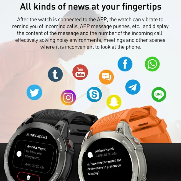 20. Reminder function: alarm, sedentary, water, event, incoming calls, SMS, WeChat, Skype, Whatsapp, Facebook, Messenger, etc.