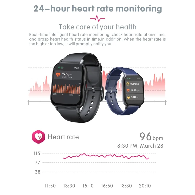 4. Health management: Sleep monitoring, heart rate, blood pressure, Blood oxygen, Calorie monitoring, temperature detection, Sedentary reminder