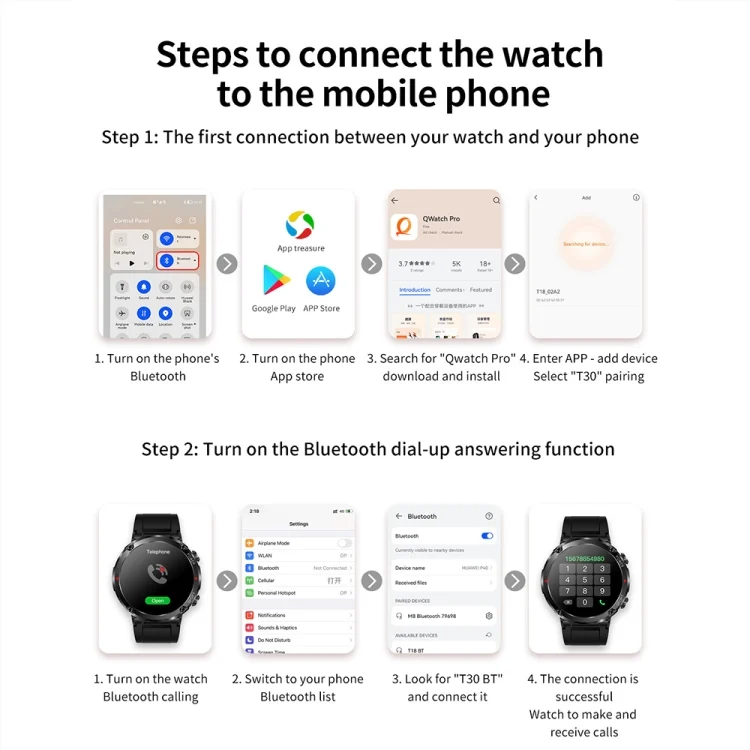 T30 1.6-inch Outdoor Sports Waterproof Smart Music Bluetooth Call Watch