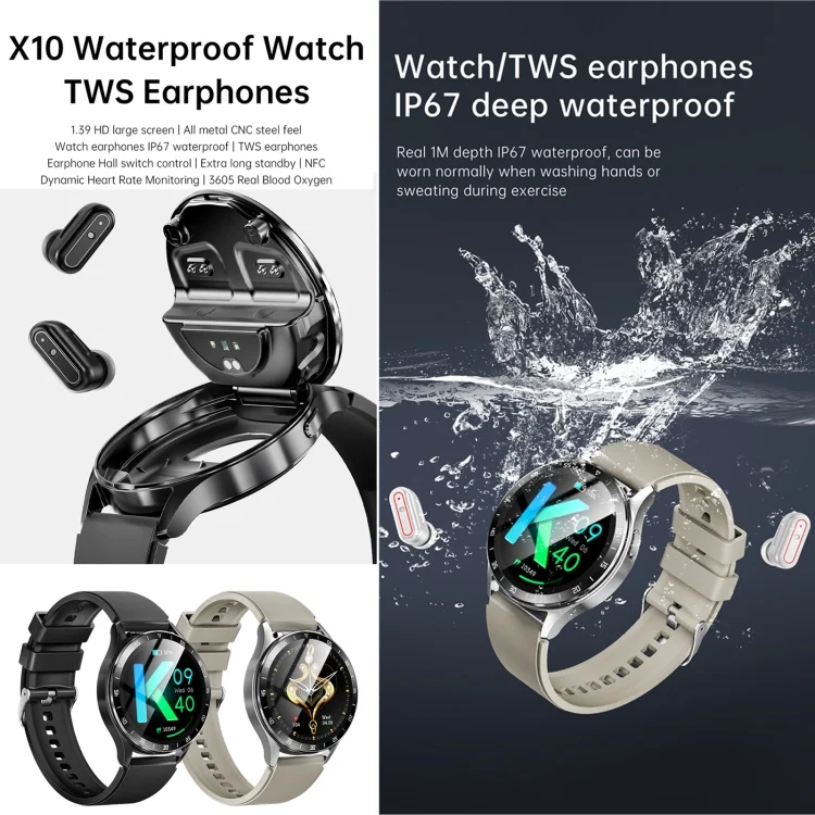 X10 Headphones Smart Watch 1.39 inch Waterproof Bracelet, Support Bluetooth Call / NFC / Heart Rate