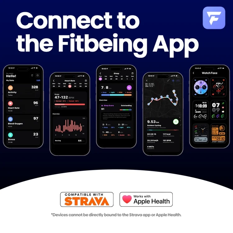 3. 24H Monitoring: Wrist-based Heart Rate (Abnormal Heart Rate Alerts), Step, Standing, Calories Burned, Real-time Distance.